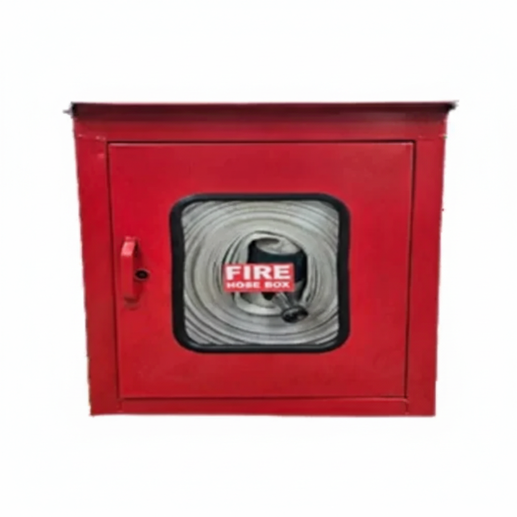 Hose Reels & Boxes: Indian Standard (IS 884) first-aid hose reels and double-door hose boxes for storing delivery hoses.